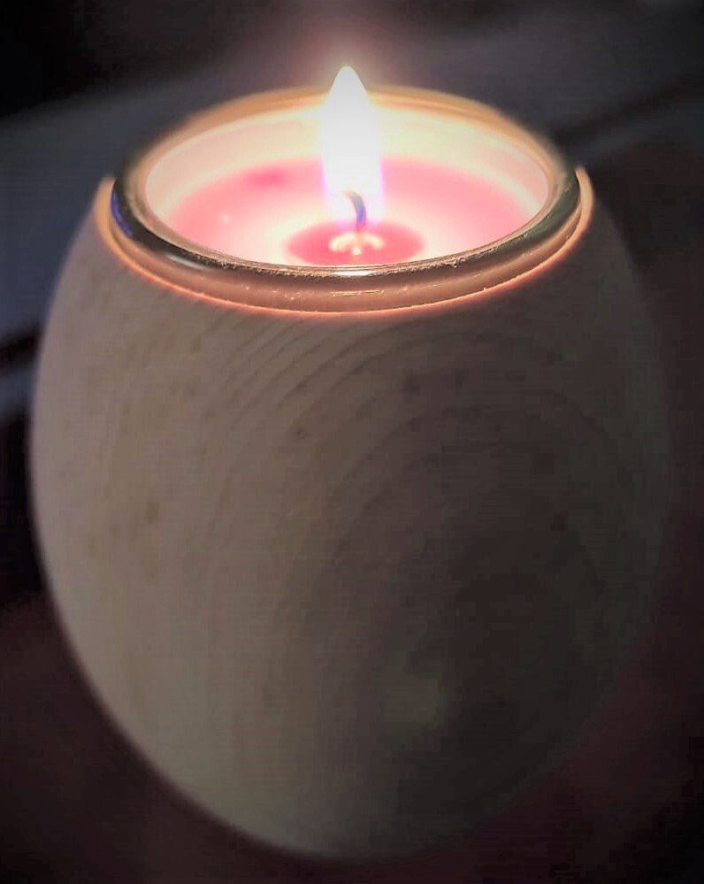 Aus luftgetrocknetem Schnalstaler Zirbenholz ist dieses.dekorative Kugellicht gedrechselt.